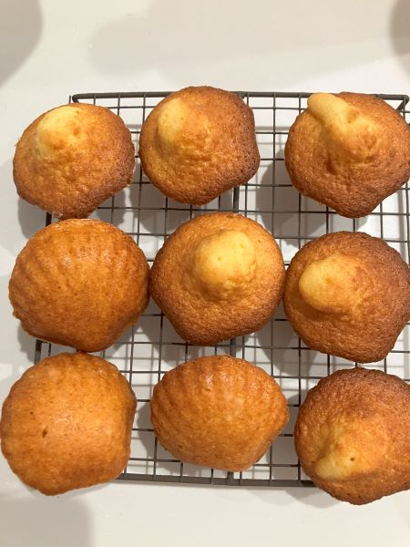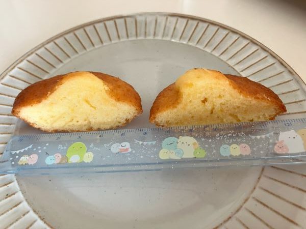 おへそ(マドレーヌのポコッとした部分)から何か流れてる…。